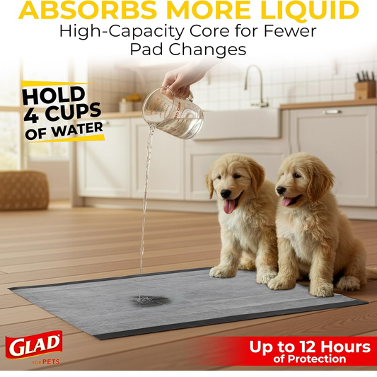 Glad for Pets JUMBOSIZE/XL Charcoal Puppy Pads, Allinone Black Training Pads That ABSORB & Neutralize Urine Instantly New & Improved Quality, 50 Count