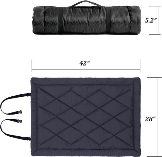 Rollup Camping Outdoor Dog Bed,Portable Dog Travel Mat with Carry Handles for Medium Large Dogs Waterproof Washable Pet Pad,42 * 28”Dark Blue