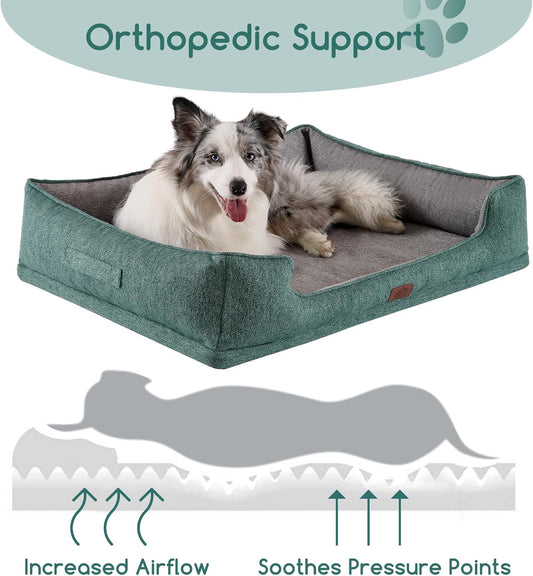 Orthopedic Dog Bed for Large Dogs, Pet Sofa Bed with Egg Crate Foam, 4-Sided Bolster, Removable Washable Cover & Anti-Slip Bottom, X-Large Calliste Green