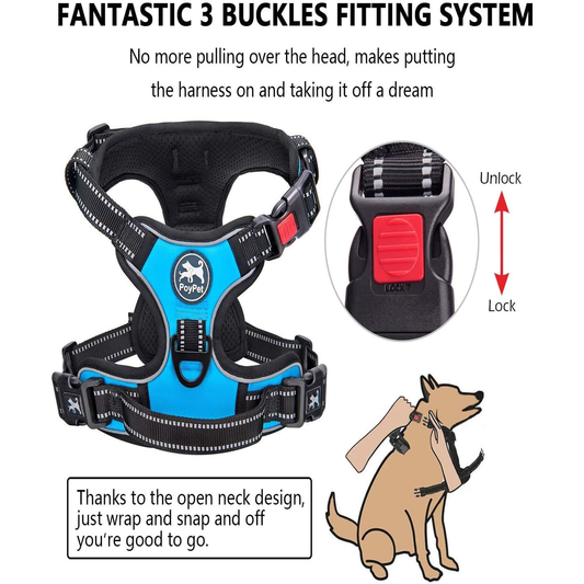 Dog Harness and Leash Combo, Escape Proof No Pull Vest Harness, with 5 Feet Leash, Reflective Adjustable Soft Padded Pet Harness with Handle for Small to Large Dogs(Blue)