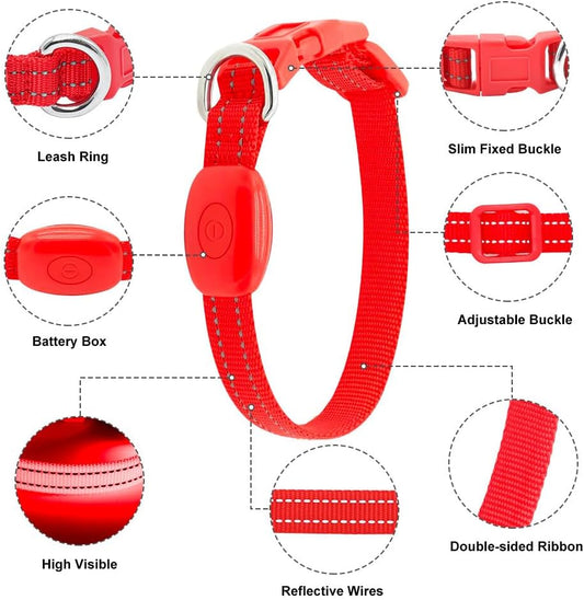 Light up Dog Collar for Small Dogs, LED Dog Collar Rechargeable Safety Dog Lights, Fully Adjustable Glow in the Dark Collars(X-Small)