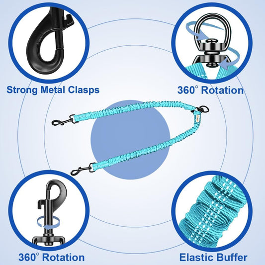 Dual Dog Leash for Large/Medium Dogs-Reflective Bungee, Shock Absorbing Training