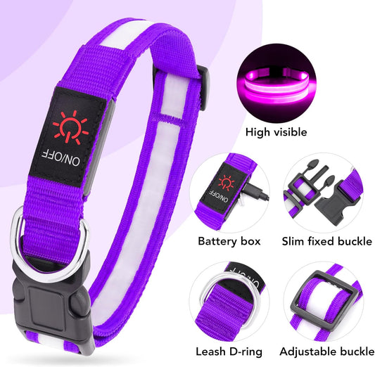 LED Dog Collar, Light up Dog Collar Adjustable USB Rechargeable Super Bright Safety Light Glowing Collars for Dogs