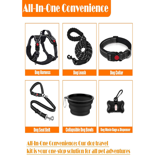 No Pull Dog Harness, Collar & Leash Set | Includes Dog Seat Belt, Collapsible Bowls & Poop Bag Dispenser, Fits Small to Large Dogs(Black-XL)