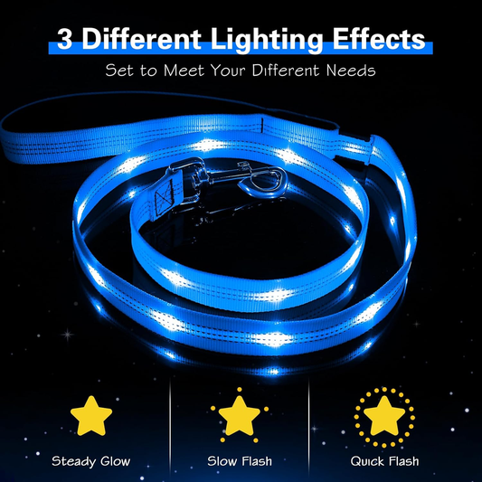 Light up Dog Leash - 5 Ft LED Pet Leash Rechargeable Glow in the Dark Dog Rope Safety Dog Lights for Night Walking
