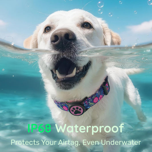 Airtag Dog Collar,With Waterproof Airtag Holder,Original Stylish Cute Pattern Design.Qr Code ID Buckle,Comfortable Soft Cotton for Small Medium Large Dogs
