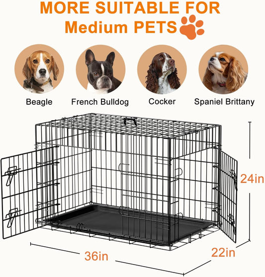 Dog Crate 36Inch Dog Cage Foldable Metal Kennel with Leakproof Tray Foldable Design Indoor Outdoor Use for Medium Dogs,Black